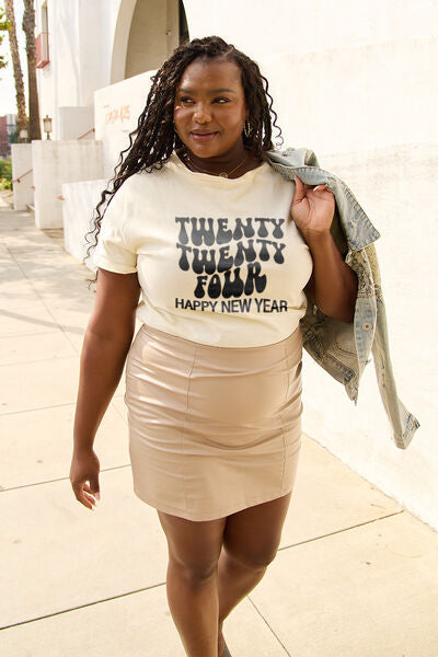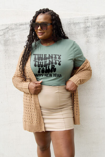 Simply Love Full Size TWENTY TWENTY FOUR HAPPY NEW YEAR Round Neck T-Shirt